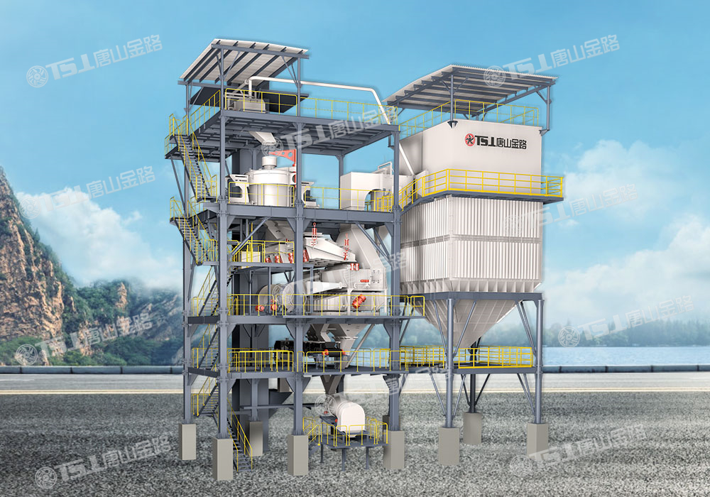唐山金路V9干式制砂樓主要用于高品質機制砂的生產中,由五孔碾磨制砂機、空氣篩、粗細粉分離機、加濕拌合機等設備組成。